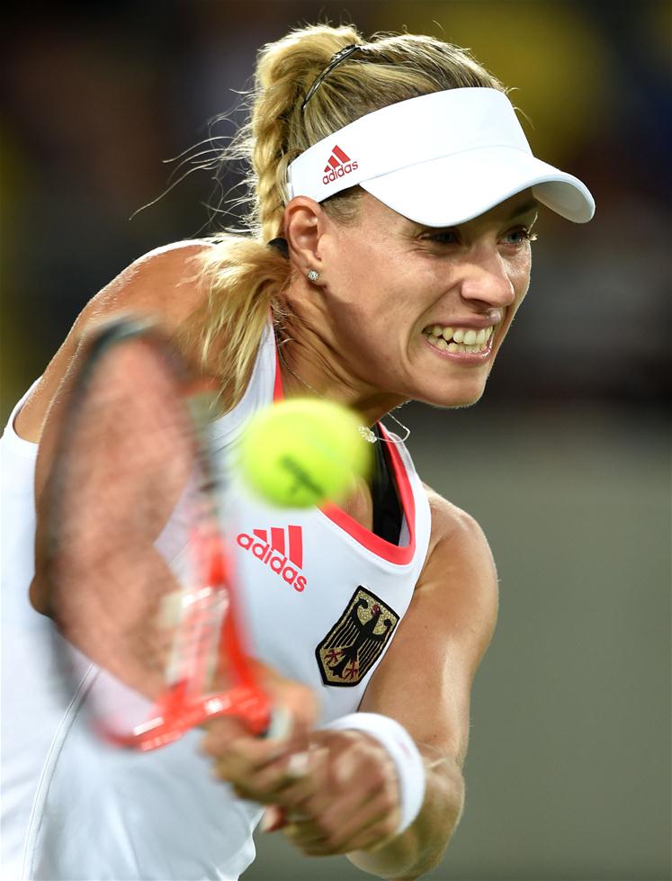 8月13日,科贝尔在比赛中回球。当日,在2016年里约奥运会网球女子单打决赛中,德国选手科贝尔以1比2不敌波多黎各选手普奇,获得亚军。