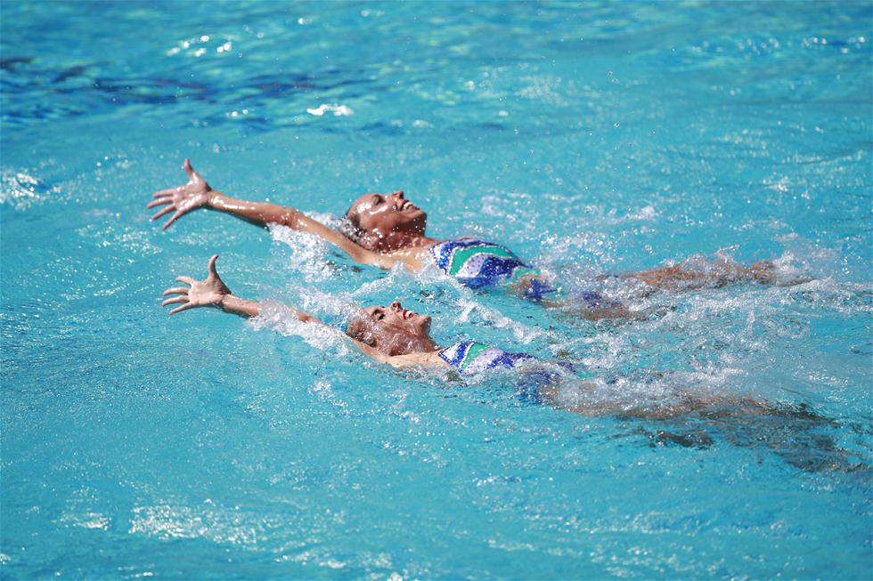 花样游泳项目进行双人技术自选 墨西哥乌克兰选手参赛
