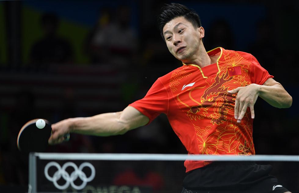 8月15日,中国选手马龙在比赛中。 当日,在2016年里约奥运会乒乓球男子团体半决赛中,中国队以3比0战胜韩国队,挺进决赛。