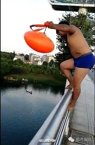 奥运会正如火如荼的进行,看到中国健儿们争金夺银,尤其是我们的优势项目跳水,鹰潭的一个小伙子也心痒痒起来,模仿健儿们玩高台跳水,只不过他选择的是大桥。