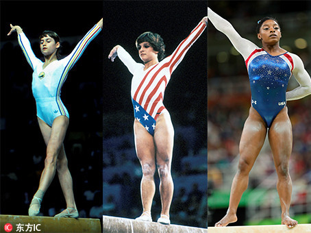 要知道,体操运动服并不总是这样闪耀和时髦的,早在上世纪三、四十年代,体操队员的紧身衣看起来有点像奶奶们的海滩装:腿部线条被无情拉低,四四方方、松松垮垮的体操服遮盖了臀部,不便展示高难度的专业性动作。