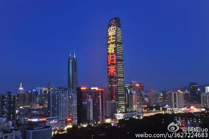深圳大厦亮灯恭喜中国女排 大赞“王者归来”