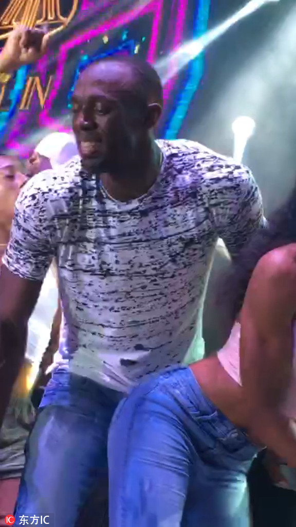 博尔特携美女夜店热舞 姿势大胆忘我享受