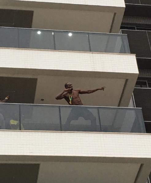 北京时间8月22日,近日在运动员公寓博尔特庆祝生日,他可能太开心了以至于一直戴着块儿金牌在阳台上站着跟所有人招手,还跟队友自拍。后来楼底下聚集了一票人他又是扔帽子又是扔衣服,然后底下抢成一团。