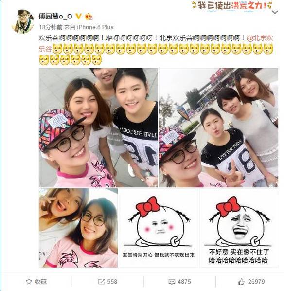 今天,傅园慧在社交平台晒出了自己和国家队队友去游乐场的照片,感觉一大波人正在向游乐场靠近。