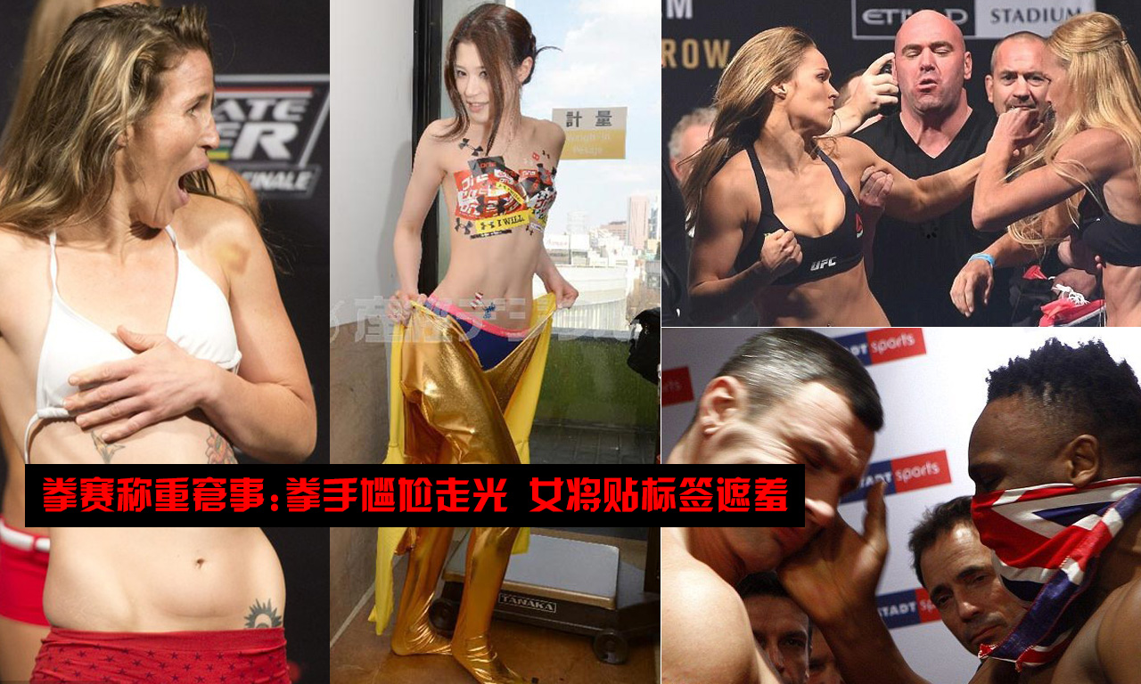 拳赛称重囧事:拳手尴尬走光 女将贴标签遮羞