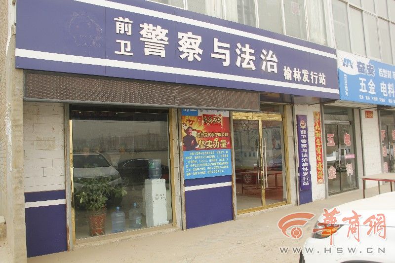记者注意到,这个自称是“前卫·警察与法治”的榆林发行站,门匾上悬挂警徽,并采用警方通常使用的蓝底白字格调进行装修,乍一看确实像一个派出所。