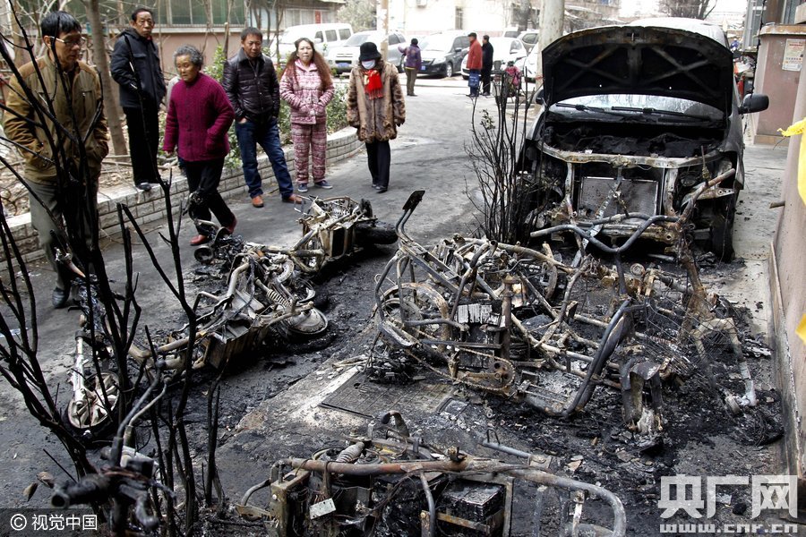 乱扯电线的后果:8辆电动车1辆轿车被烧毁