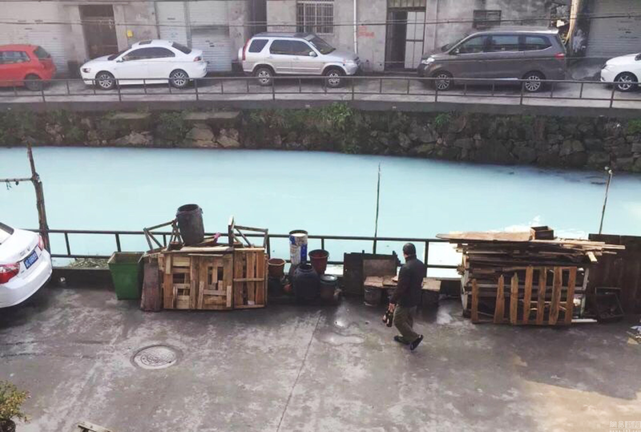 2016年3月14日消息,浙江温州。今天,据网友“@奴奴猪2011”发微博爆料:瓯海区梧田街道南村某河道河水显示奶绿色,怀疑存在企业排污。温州网记者第一时间赶赴现场。视觉中国供图