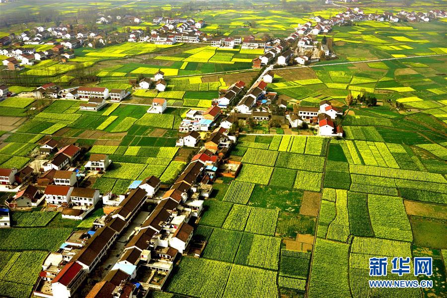 这是3月19日航拍的汉中市南郑县新集镇盛开的油菜花海。