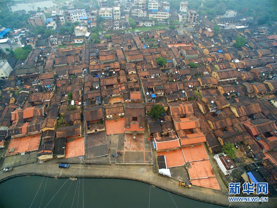 福建省漳州市天宝镇洪坑村古村落俯瞰(3月18日摄)。福建省漳州市芗城区天宝镇洪坑村古村落是国家住建部公布的第二批“中国传统村落”。走进洪坑村,面湖的古厝一字排开,坐南朝北,红砖白石,极具闽南建筑特色。站在高处远望,古厝、圆楼、蕉园、鸿湖尽收眼底。近年来,当地政府投入资金对洪坑村进行了环境整治与保护,村容村貌得到很大改观。现在,古村落中的年轻人大部分都已迁出,只留下坚守着传统生活方式的老人们。古村、古厝与悠闲生活在这里的老人们,让洪坑村成为一处活态的闽南乡村文化博物馆。新华社记者姜克红摄