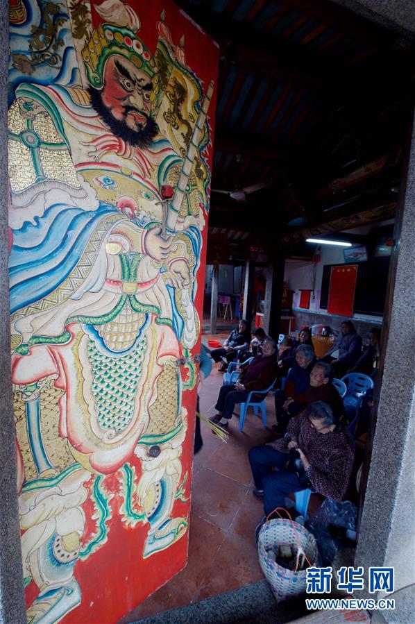 福建省漳州市天宝镇洪坑村一处寺庙内,老人们在看电视休闲(3月18日摄)。福建省漳州市芗城区天宝镇洪坑村古村落是国家住建部公布的第二批“中国传统村落”。走进洪坑村,面湖的古厝一字排开,坐南朝北,红砖白石,极具闽南建筑特色。站在高处远望,古厝、圆楼、蕉园、鸿湖尽收眼底。近年来,当地政府投入资金对洪坑村进行了环境整治与保护,村容村貌得到很大改观。现在,古村落中的年轻人大部分都已迁出,只留下坚守着传统生活方式的老人们。古村、古厝与悠闲生活在这里的老人们,让洪坑村成为一处活态的闽南乡村文化博物馆。新华社记者姜克红摄