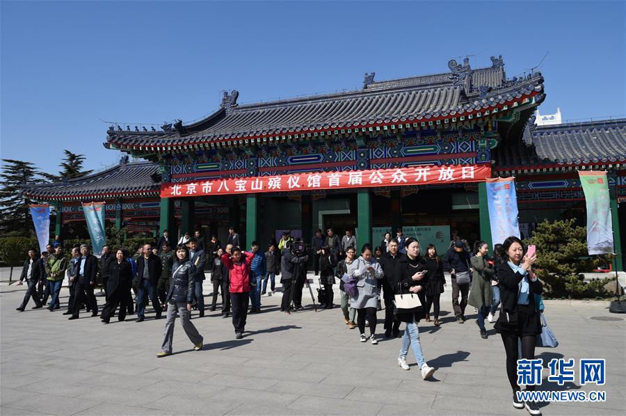 3月23日,人们在八宝山殡仪馆参加开放日活动。清明将至,北京八宝山殡仪馆举行首届公众开放日活动,邀请市民、行风监督员等前往参观。市民可以近距离接触殡仪服务的每个环节,了解殡葬行业。新华社记者 鞠焕宗 摄