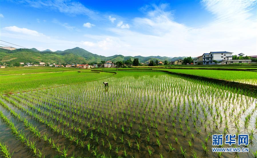 5月15日,农民在重庆市南川区南城街道清泉社区的水稻田里劳作。新华社发(瞿明斌 摄)
